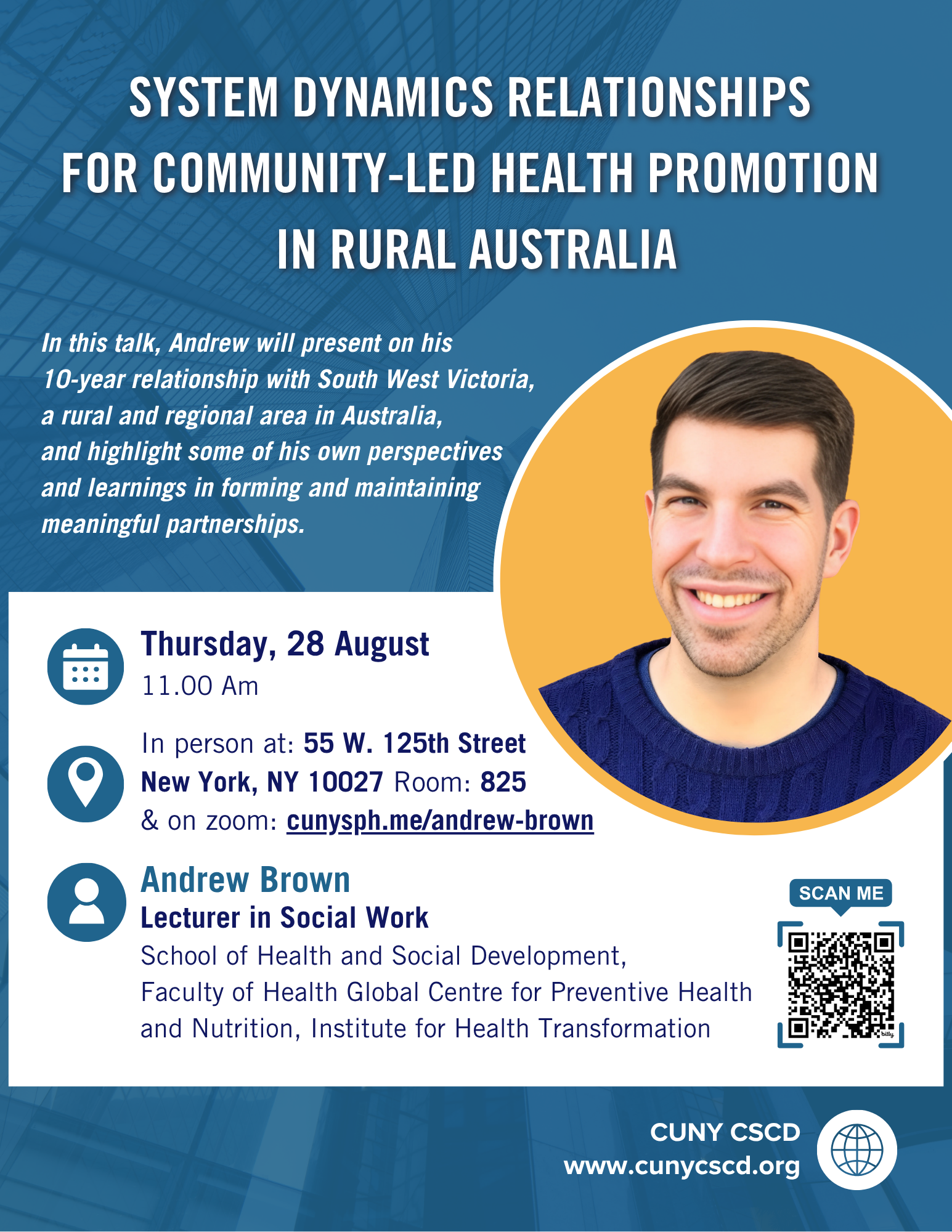 Join us to learn about how System Dynamics Relationships for Community-lead health promotion in rural Australia is making an impact!
